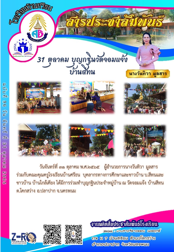คณะครูโรงเรียนบ้านศรีธน ร่วมทำบุญกฐินประจำหมู่บ้าน ณ วัดจอมแจ้ง