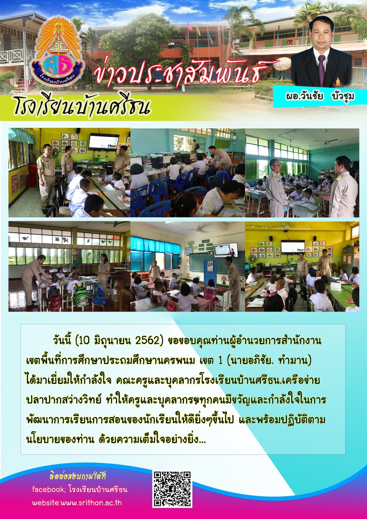 ผู้อำนวยการสำนักงาน เขตพื้นที่การศึกษาประถมศึกษานครพนม เขต 1 (นายอภิชัย. ทำมาน) ได้มาเยี่ยมให้กำลังใ